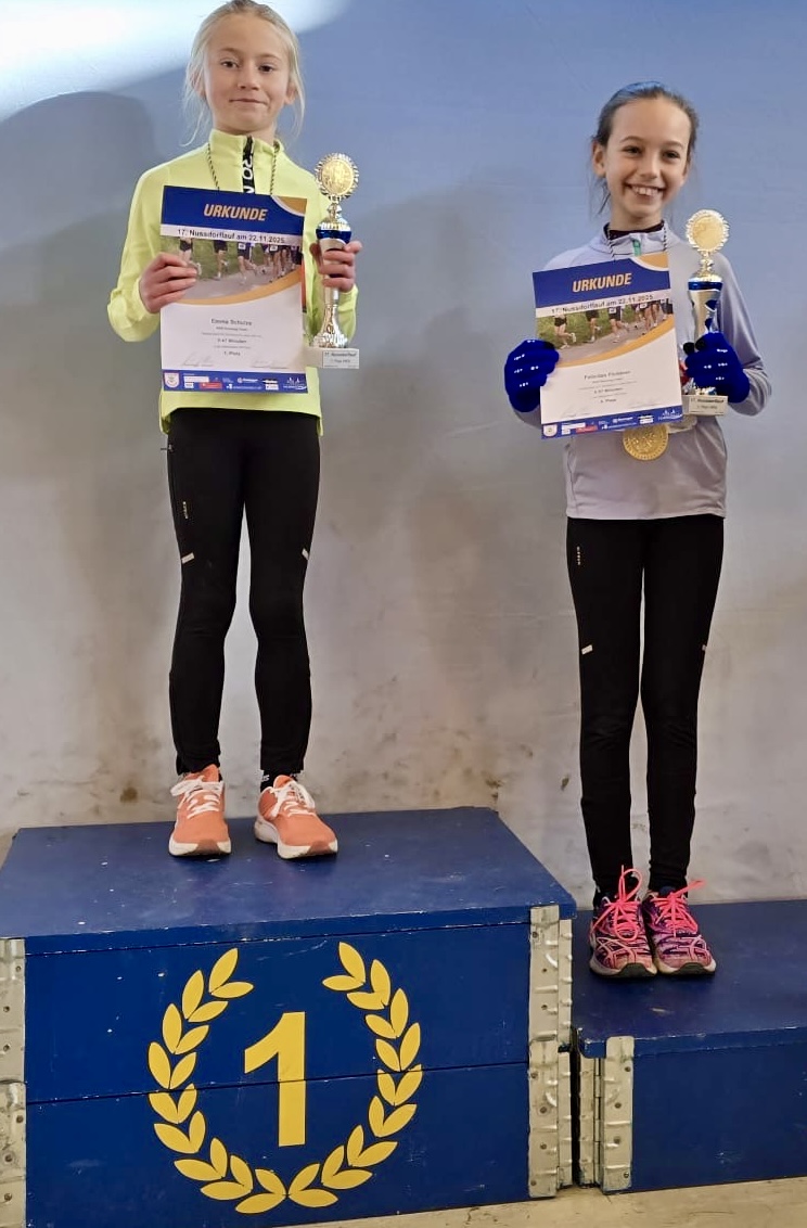 Bei klirrender Kälte, aber dafür strahlendem Sonnenschein, traten die Läuferinnen und Läufer des KSG-Runningteam unter Betreuung unserer Trainer Simon und Stefan am Samstag beim perfekt organisierten 17. Nussdorflauf an. Wie in den Vorjahren war die Veranstaltung gut besucht und die Runner des KSG mussten sich bei Start und Strecke ganz schön durchsetzen. Und das gelang! Bei den Schülerläufen über 1,5km mit teilweise über 100 Teilnehmern pro Altersklasse erreichten Jakob Schulze in der U8 Platz 6, Emma Schulze sicherte sich in der W9 einen Pokal auf Platz 1, Felicitas Fichtner stand stolz neben ihr auf dem Treppchen bei Platz 3. Theo Hohl räumte bei den M8 den 2. Platz ab, sein Bruder Mika Hohl bei den Bambini sogar Platz 1. In der stark besetzten U12 fegte Amalia Schlegel auf Platz 2 und Olivia Hermann kam nur Sekunden später als Fünfte über die Ziellinie gestürmt. Beim Teen Run über 3,3km stürmten fast 300 Starterinnen und Starter auf einen Rutsch los. Anna-Lena Wendling und Clarissa Schlegel behielten dabei die Übersicht und sicherten sich tolle Zeiten. Clarissa kam als drittschnellste und Anna-Lena als schnellste Läuferin ins Ziel. Zur Sonderwertung gesellte sich bei beiden noch ein Pokal für Platz 1 in ihren Altersklassen. Aber auch Marc Schulze wollte es nochmal wissen, nachdem seine Tochter Emma so erfolgreich war: beim Lauf über 6,6km holte er sich bei den M45 den 1. Platz und noch einen Pokal für die Familiensammlung.