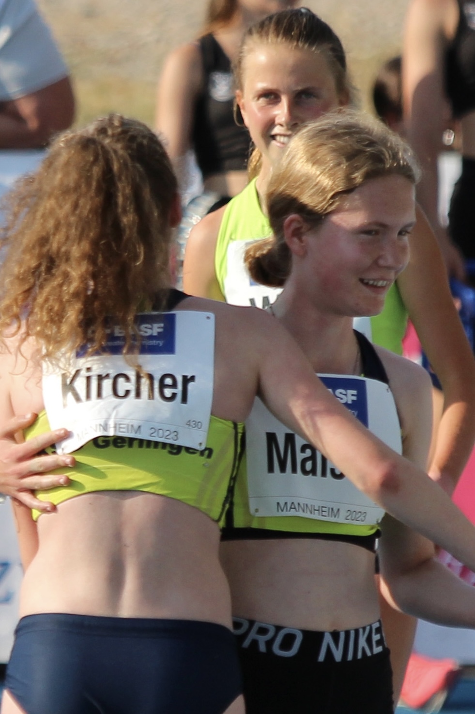 Die BAUHAUS Junioren Gala ist ein seit dem Jahr 1994 ausgetragenes internationales Leichtathletikmeeting für junge Nachwuchssportler aus aller Welt. Pia Kircher, Lisa Maisch und Kira Weis wurden von Bundestrainerin Julia Grommisch für einen Start nominiert. Somit waren 3 von 9 Starterinnen vom KSG-Runningteam! Gut trainiert standen die drei am Samstag Abend am Start des 3000m Laufs. Schon kurz nach dem Startschuss zeichnete sich ein Bummelrennen ab. "Bei sengender Hitze nur nicht zu schnell angehen" hieß die Devise. An der Spitze liefen Kira, Ebba aus Schweden und Charlotte aus Belgien teilweise zu dritt nebeneinander. Die erste Runde wurde in gemütlichen 1:27 min absolviert. Nach der Hälfte des Rennens nahm Kira schließlich das Heft in die Hand und zog den langen Spurt an. Ebba und Charlotte fielen ab, es konnte noch Sofia folgen, die 400m vor dem Ziel vorbeizog. Beide Läuferinnen lieferten sich nun Seite an Seite ein Duell. Spannend wurde es auf der Zielgerade als beide ihren Maximalspurt auspackten. Im Ziel lag Sofia dicht vor Kira, die in 9:32 min Zweite wurde. Im Feld dahinter Pia und Lisa. Pia konnte eine tolle neue Bestzeit erreichen. In 10:02 min blieb sie nur knapp über der magischen Marke von 10 Minuten.
