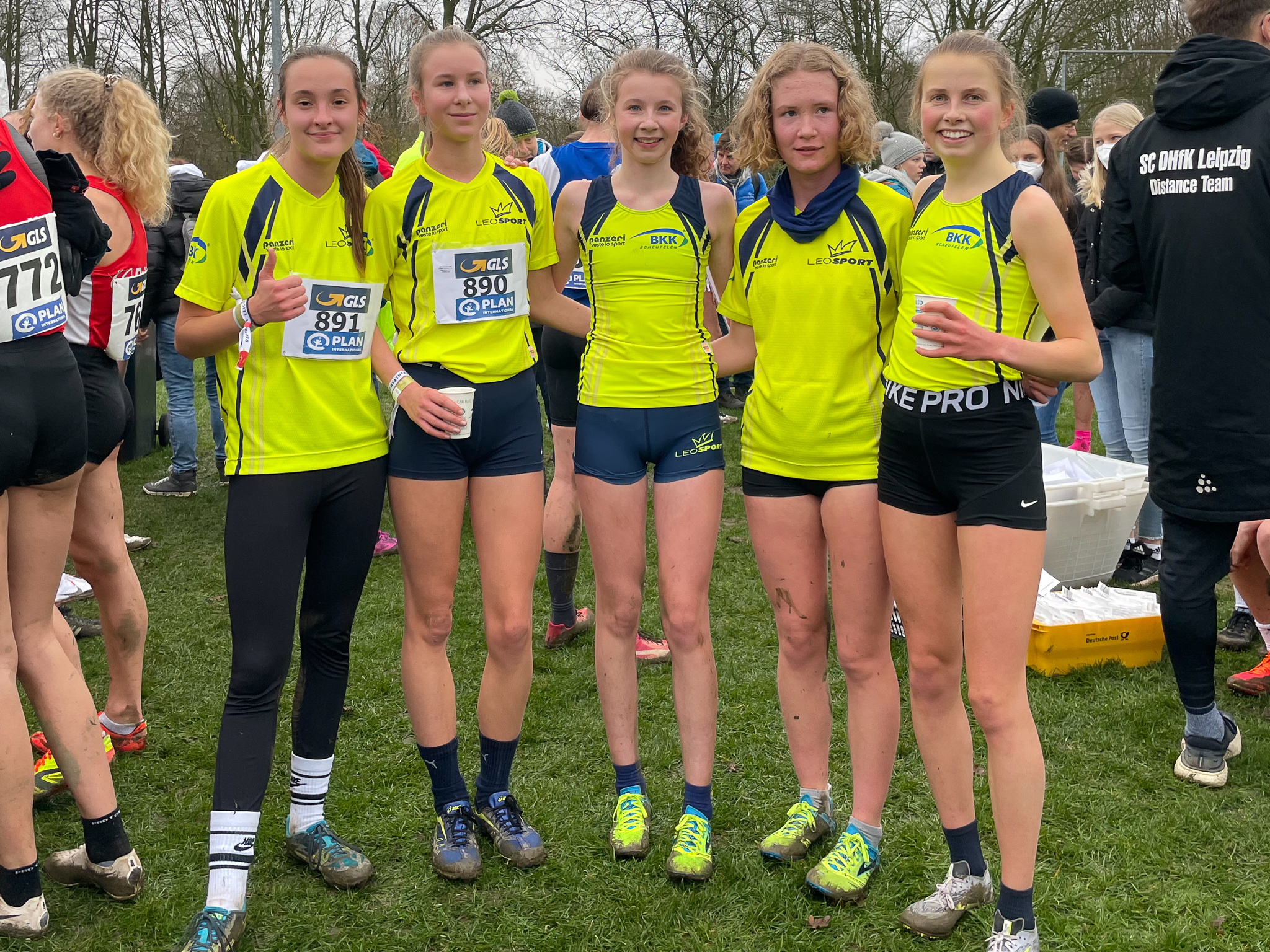Unmittelbar nach dem Zieleinlauf beginnt bei allen Teams das große Rechnen, denn die Mannschaftswertung ergibt sich im Crosslauf durch die Addition der 3 Topplatzierungen jedes Teams. Nach mehrfachem Zählen und wiederholtem Nachrechen, auch vor dem Livestream daheim in Gerlingen dürfen sich die Mädels mit nur 50 Zählern über den Gewinn der Mannschaftswertung, denkbar knapp vor Münster mit 52 und Löningen mit 57 Zählern, freuen.