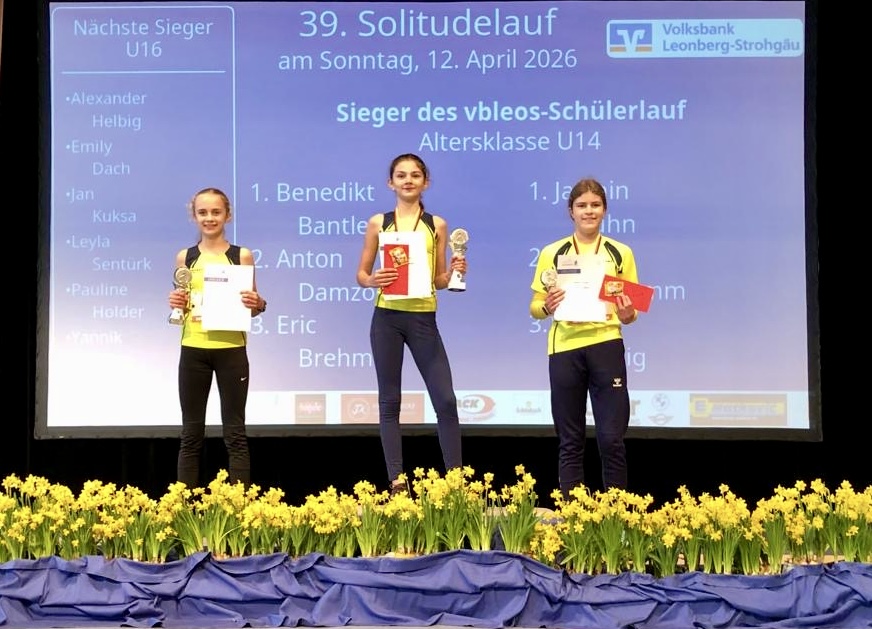 Ein absolut beeindruckendes Aufgebot vom Runningteam hatte im gemeinsamen Rennen der weiblichen U14 und U16 gemeldet. Unter anderem hatte Leyla Sentürk die Schuhe geschnürt, letztes Jahr deutschlandweit die Nummer 4 über 800 m Freiluft und sogar die Schnellste in der Halle. Dazu kam Merle Steinmann, die sich erst kürzlich bei ihrem Gastverein im Cross zur Schweizer Vizemeisterin U16 gekürt hat. Außerdem gingen die Rennraketen Emily Dach, Pauline Holder und Romy Schäfer als Mitfavoritinnen an den Start. In der U14 gaben sich die trainingsbegeisterten Clara Schromm und Jasmin Kuhn die Ehre – nie zuvor war eine Gerlingerin in ihrem Alter über 800 m so schnell wie Jasmin. Außerdem an der Startlinie: Rekonvaleszentin Lara Fritzsche, die immer besser in Fahrt kommt, Carla Brehme, Clara Bubeck, Olivia Hermann, Selina Lässig, Ruth Lindemann, Yuna Möhle, Laura Pantchev, Clarissa Schlegel, Annika von Brand, Katharina Wendling und Theresa Wernicke. In der U14 wurden Jasmin mit Gold und Clara mit Silber den Erwartungen vollauf gerecht, Bronze ergatterte Selina. In der U16 erlebten die zahlreichen Zuschauer ein wahres Herzschlagfinale. Bei 2:37 min blieb die Uhr gleich für die drei Erstplatzierten stehen. Die Zentimeterausmessung ergab den Sieg für Leyla, gefolgt von Pauline und Emily. Hauchzart dahinter wiederum rannten Merle und Romy durch die Zeitmessanlage. Insgesamt gingen in diesem Rennen der beiden Altersklassen von den 15 ersten Plätzen spektakuläre 14 an unser Team!