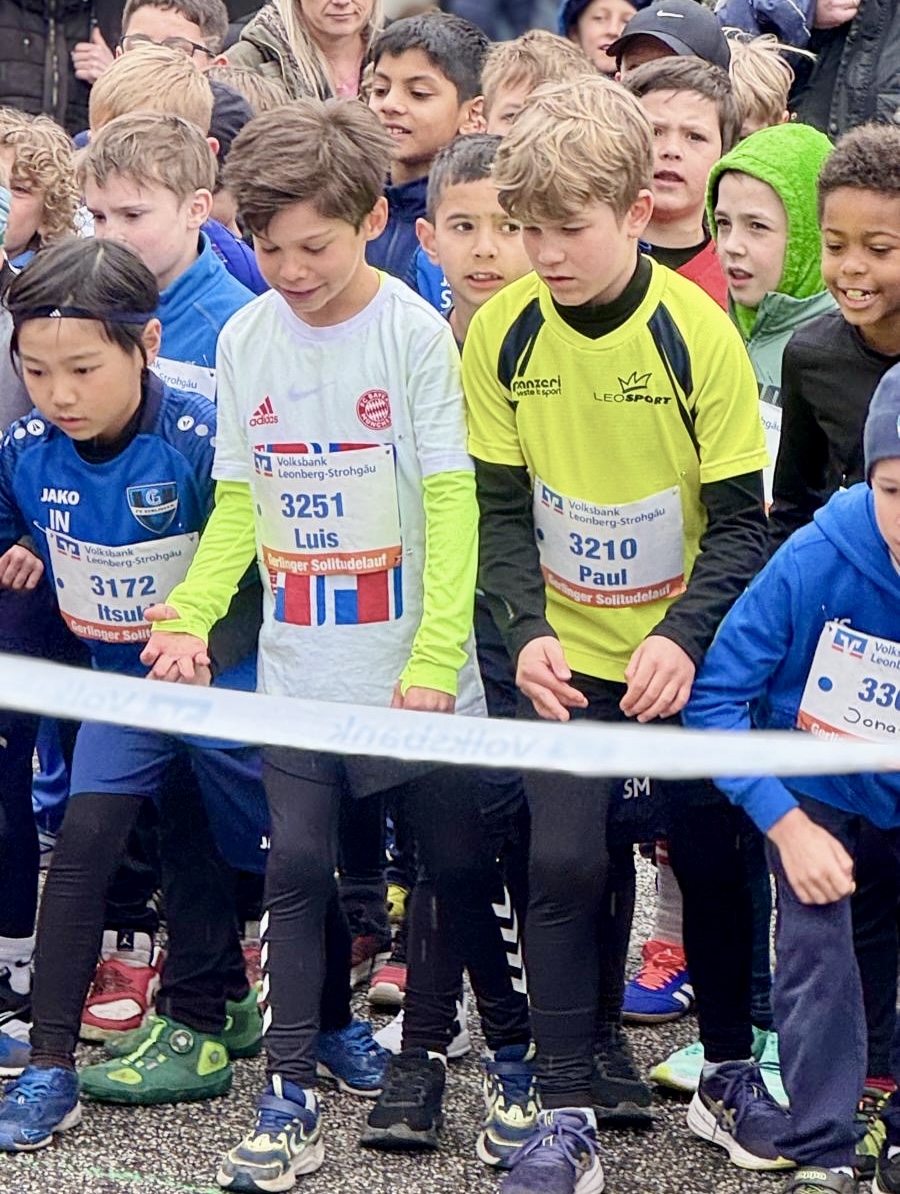 Während die langen Läufe auf der Gerlinger Schillerhöhe starteten und die Teilnehmer dann je nach Länge durch die Gerlinger Gemarkung bis hinunter zum Marktplatz führten, gingen die Schülerläufe um das Rathaus herum. 450 m mussten die Mädchen U8 bewältigen. Mira Arnold, Alisea Bicaku, Alia Konrad, Karlotta Maisch, Alina Morchner, Larissa Neuhaus, Chiara Schimmang, Elisa und Sophia Schröder sowie Lotte Zuleck stellten dabei unter Beweis, dass ihr Training schon sichtbare Wirkungen zeigt. Alle überzeugten mit guten Leistungen. Lotte holte sogar den Gesamtsieg! Bei den jüngsten Jungs holten die pfeilschnellen Matteo Fecker, Jonas Hieber, Mika Hohl, David Münster, Henrik Schulze, Justus Strehl, Magnus Stumpp, Matteo Vicedomini, David und Oscar Wagner sowie Deniz Yilmaz alles aus sich heraus und wurden mit viel Applaus der Zuschauer ins Ziel begleitet.