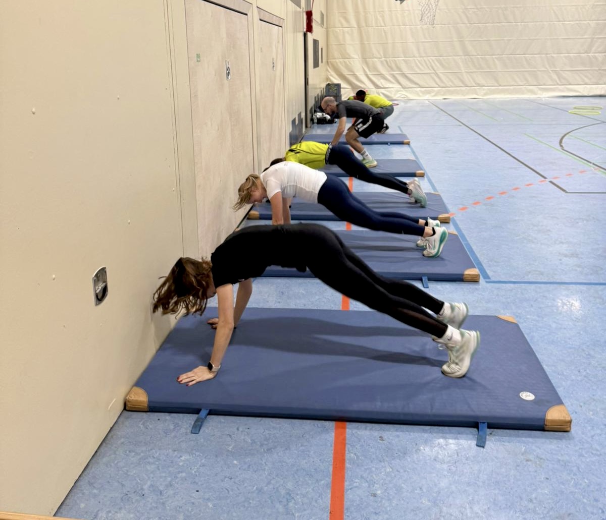 Mittags durften wir wählen zwischen Dauerlauf, Krafttraining, Ballspiel und Spinning Bike fahren.