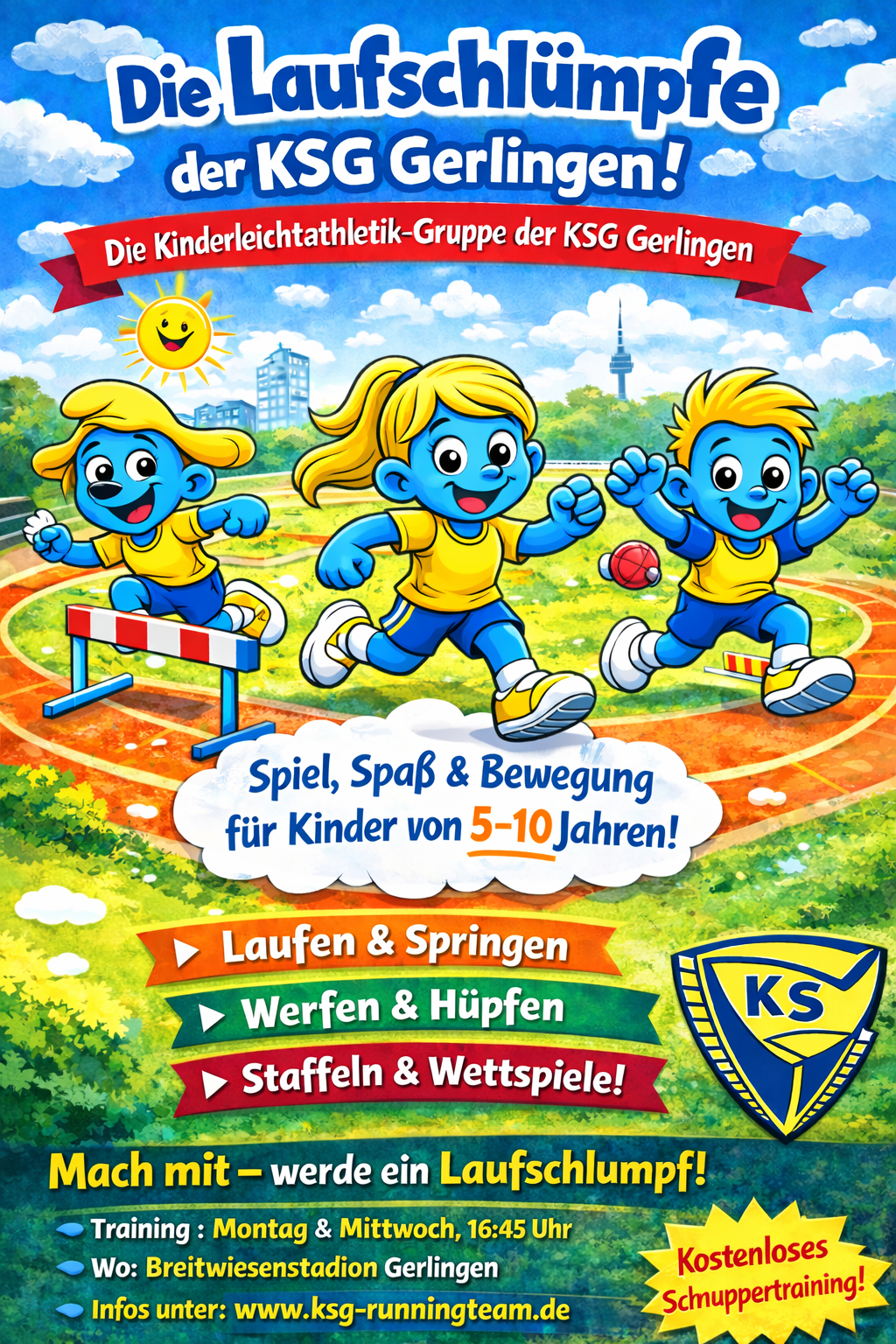 Das Schlumpflaufteam ist das Kinderlaufteam der KSG Gerlingen. Es wurde 2012 als eines der ersten Kinderlaufteams in Deutschland gegründet. In der "Läuferstadt" Gerlingen haben seitdem unzählige Kinder und Jugendliche den Laufsport als ihre Sportart entdeckt. Das Schlumpflaufteam als Baustein der Abteilung Leichtathletik (Sprint&Lauf) überzeugt mit einem einmaligen Konzept sowohl für den Breiten- als auch den Wettkampfsport. Das Leichtathletiktraining im Schlumpflaufteam wird ergänzt durch spielerisches Lauftraining. Die Laufschlümpfe trainieren hierbei besonders effektiv ihre Kondition und Koordination, was Vorteile für ihre körperliche Entwicklung hat: Verbesserung des Orientierungssinns, der Differenzierungsfähigkeit und des Gleichgewichtssinns, schnellere Reaktionsgeschwindigkeit, Erhöhung von Kraft, Schnelligkeit und Beweglichkeit.