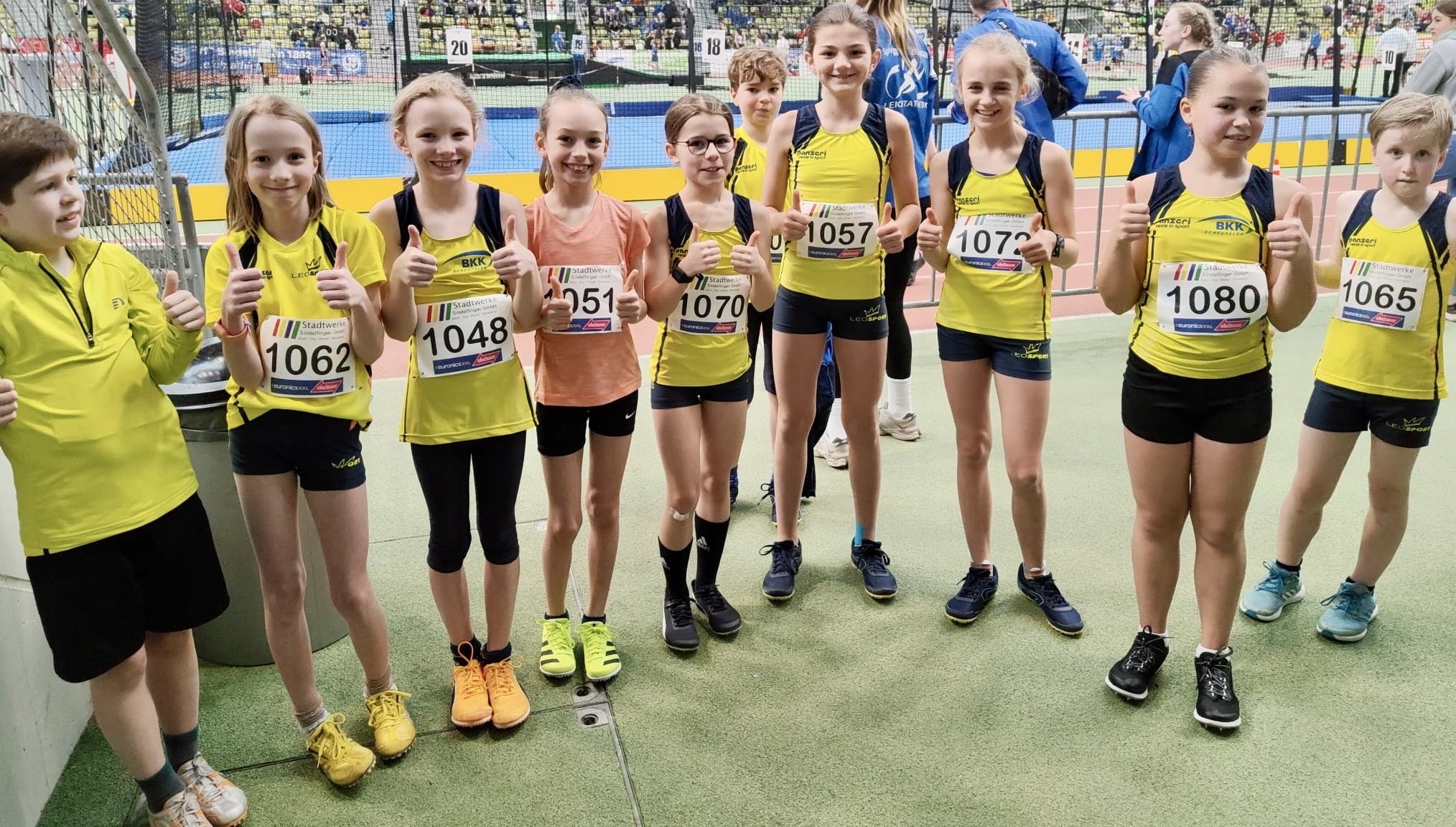 Als "eine wahre Machtdemonstration" bezeichnete die Hallensprecherin den Auftritt unser W14-Mädels. Kein Wunder, schließlich gingen die ersten fünf Plätze lückenlos an unser Runningteam. Den Vogel schoss dabei Janka Mosler ab, die eigentlich noch in der W13 startberechtigt ist, aber aufgrund ihrer Laufstärke – und offensichtlich zu Recht – bei den älteren Läuferinnen an den Start ging. Silber und Bronze schnappten sich hier Merle Steinmann und Romy Schäfer. Emily Dach, gefolgt von Freya Huppenbauer, gelang auf Rang vier ihre nächste persönliche Leistungssteigerung.