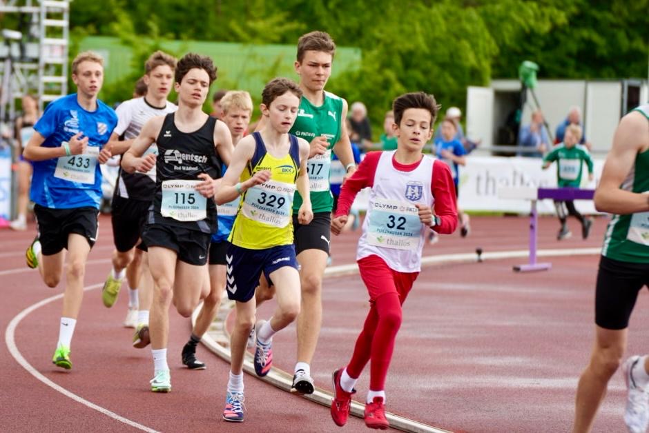 Als Erster ging Adam auf die Strecke, um über die 1.000 Meter möglichst eine neue Bestzeit aus dem Schuh zu zaubern und vielleicht sogar schon an die Drei-Minuten-Marke heranzulaufen. In einem sehr schnellen Rennen sortierte er sich gleich mutig im vorderen Feld ein und nahm seine Kontrahenten nicht nur in Augenschein, sondern setzte sich zwischenzeitlich sogar an die Spitze. Dann jedoch wurde das Tempo immer weiter forciert und Adam konnte dem Führenden nicht mehr ganz Paroli bieten. Im Schlusssprint setzte sich noch ein weiterer U16-Läufer vor ihn. Letztlich gelang Adam aber ein Bombenrennen, das mit Bronze belohnt wurde! Fantastischer Auftakt für unser Team.