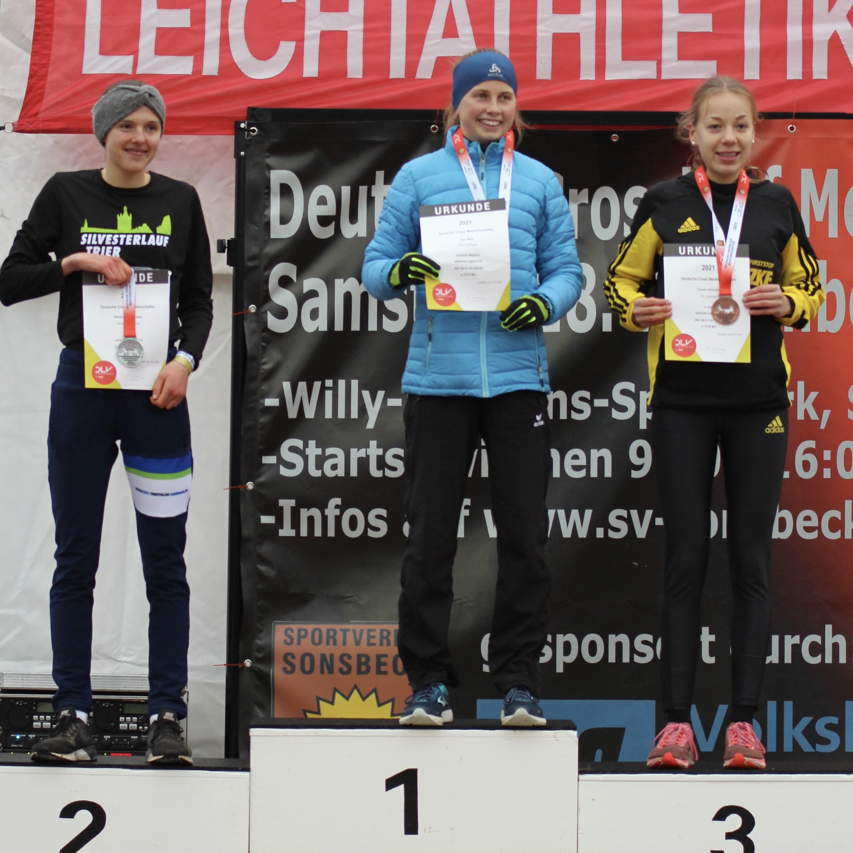 Kira Weis ist auch durch den Matsch am Niederrhein nicht zu schlagen und gewinnt souverän den Deutschen Meistertitel in der U18. Zusammen mit Pia Kircher und Lisa Maisch in der Mannschaftswertung steht die Gerlinger Athletin zum schon dritten Mal in dieser Saison ganz oben auf dem Treppchen.