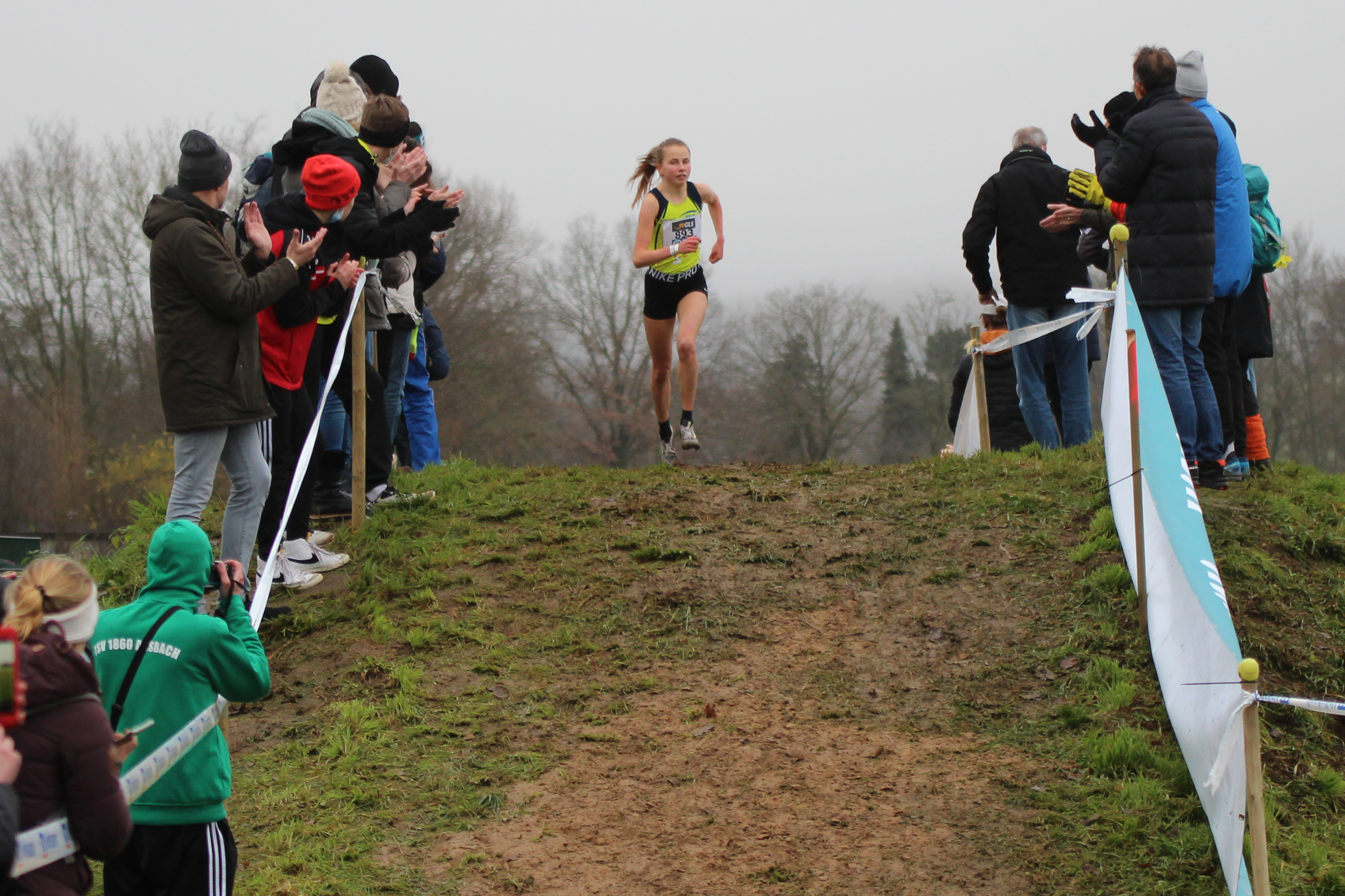 Nach einem für Crossläufe üblichen schnellen Massenstart mit über 60 Athletinnen war eine Spitzengruppe um die Deutsche Jugendmeisterin über 3000m, Kira Weis schnell gebildet, die den ersten von insgesamt zwei zu absolvierenden Rundkursen über die Felder, den „Sonsbecker Hügel“ sowie den angrenzenden Sportplatz scheinbar mühelos absolvierten. Ebenso mühelos schien jedoch auf der Startgeraden eine Athletin den anderen davonzulaufen; Kira Weis hatte beim Einbiegen auf die Startgerade das Tempo derart angezogen, dass aus der Spitzengruppe eine Spitzenläuferin wurde. Und auch im weiteren Verlauf der zweiten Runde über das Feld schien es, als diktiere die Athletin im markanten gelben Trikot den Abstand zu ihren Verfolgerinnen fast nach Belieben, wenngleich im Rennen sich das anders anfühlte. „Ich hatte immer das Gefühl gleich kommt jemand von hinten“, meint Weis nach dem Rennen. Noch einmal geht es über den „Sonsbecker Hügel“, der die Gerlinger Athletin nicht beeindrucken kann: „Im Vergleich zu den Hügeln des Sparkassencross Pforzheim war das eher eine Bodenwelle.“