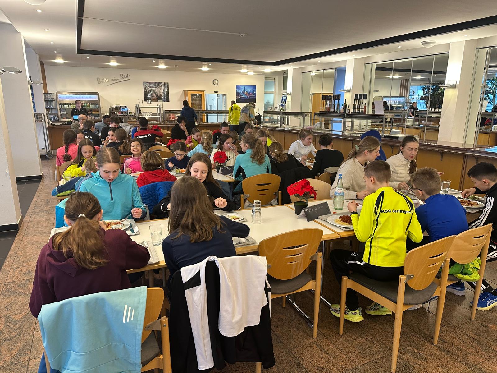 Treffpunkt war heute um 8:15 Uhr am Parkplatz vom Sportzentrum. Nachdem wir unser Gepäck im Bus verstaut hatten absolvierten wir noch eine Laufrunde von 30min.. Dann stiegen wir in den Bus nach Saarbrücken. Dort angekommen bezogen wir unsere Zimmer. Dann ging es zum Mittagessen. Nachmittags sind wir nochmals 30min gelaufen. Es war viel Schnee im Wald. Danach machten wir einen Kraftzirkel und zum Abschluss spielten wir German Baseball, eine Art Brennball, bei dem sich viele Spieler gleichzeitig bewegen. Zum Abendessen gab es Putengyros mit Reis und Chilli sin Carne.